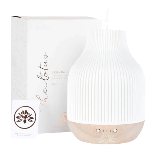 This exclusive set combines the White Ceramic & Wood Ultrasonic Diffuser Lamp with the ESSLUX Top 6 Pure Essential Oils Collection, giving you everything you need to create a soothing environment while saving more than buying separately.